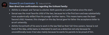 He is also an alcoholic, as he was seen drinking in a flashback; this may be why he is abusive towards his sons. The reason for being an alcoholic may be due to the death of his wife and being unable to cope with his grief. He is also quite intimidating, as both his sons are easily scared of him. He forced both of them to work in the law field as their full-time careers. In the past, he used to have Senzai as his favorite child because of his much better academic skills and him being the first born, meaning Isamu was the least favourite child. However, that changed after Senzai gave him his acceptance letter to an art university. Now, Akihito does seem to have a softer side for his youngest, Isamu. It is clear that he now favors his second son, as he is seen patting his head and later asking Senzai why he can’t be more like his brother.